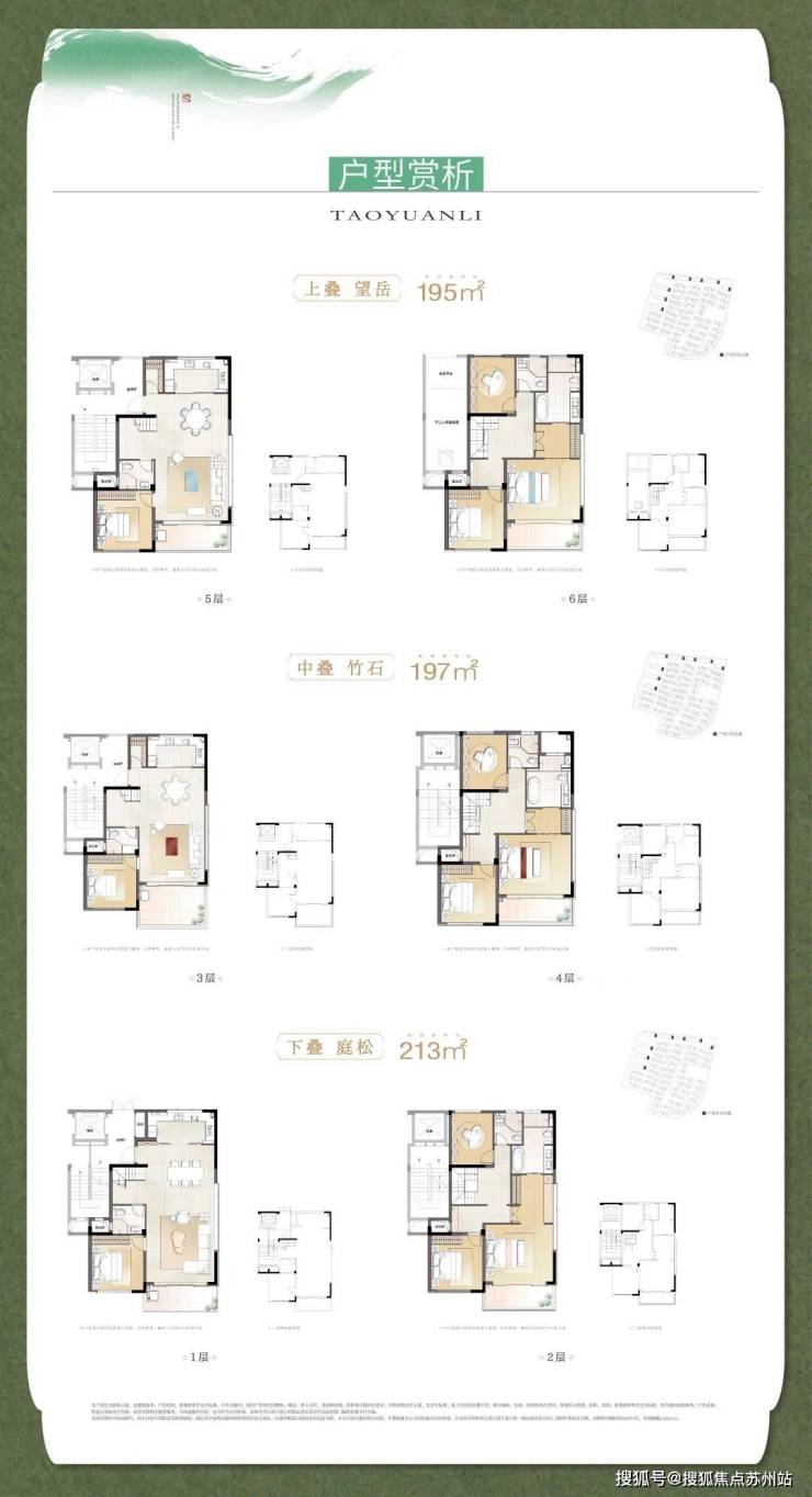 绿城桃源里的宋风叠加,建筑面积约195-213平方米,在继承与发扬传统中式美学的基础上,以现代的审美眼光,将宋文化美学与现代叠墅完美融合。
