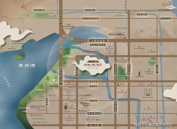 绿城桃源里择址于苏州湾万公堤旁,坐拥吴江太湖新城难以复制的主城贵脉之上。项目打造约1.05容积率的全新低密人居住区,周边汇集了商业、教育、文化、生态等多种高品质生活资源。在这里,既能享受城市的便利,又能拥有宁静的居住环境。