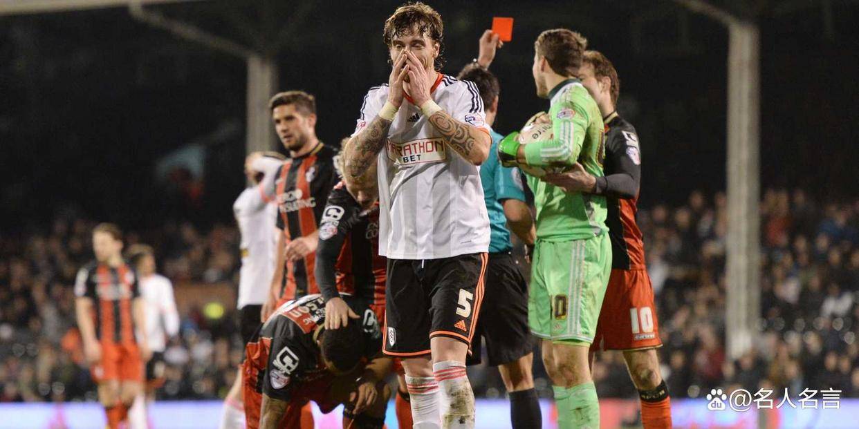 其中一张红牌出现在0-5惨败给曼城的比赛中。当时下半场刚进行8分钟,富勒姆1-0落后,他就被罚下了。