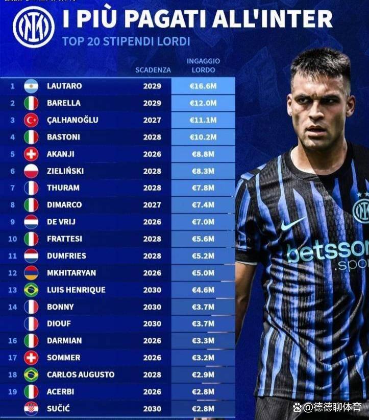 国米衣室近流传一张表格:劳塔罗、巴雷拉、恰尔汗奥卢和巴斯托尼四人税前年薪均超千万欧,全队工资帽快撑成气球。 扎眼的是劳塔罗1660万欧的年费要到2029年才到期,可他本赛季进球效率下滑,有球迷在社交媒体上发图调侃:“队长袖标遮住了射门靴? ”