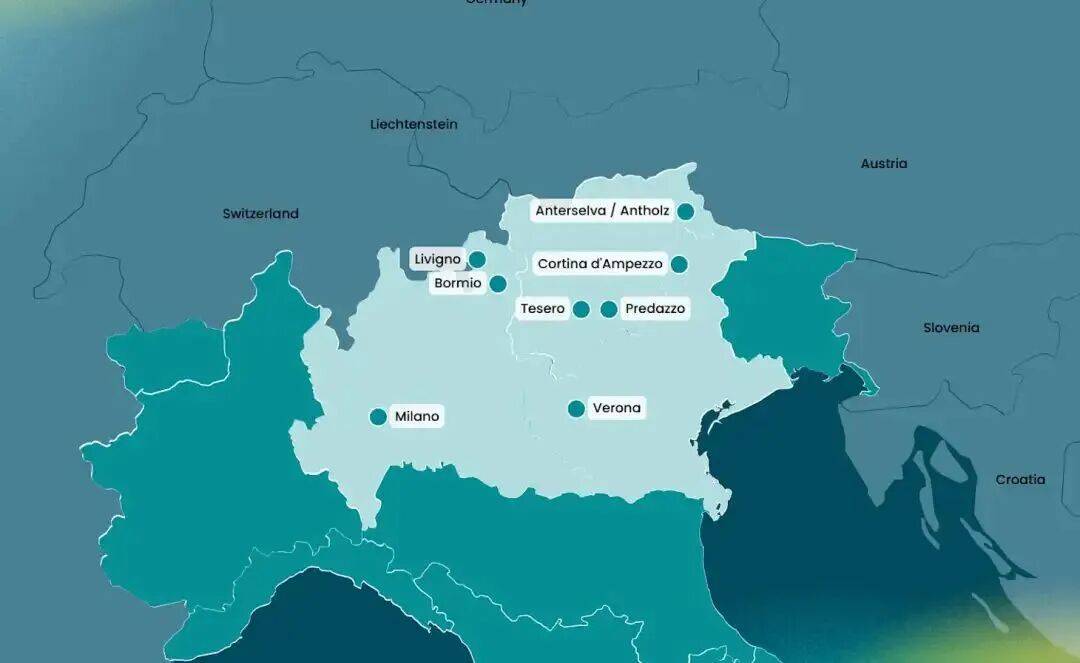 2026年米兰-科尔蒂纳冬奥会将横跨意大利北部22000平方公里的区域,成为奥运史上覆盖范围最广的一届奥运会。它将从繁华的米兰街头延伸到瑞士边境利维尼奥静谧的山峰,从迷人的度假胜地科尔蒂纳丹佩佐延伸到维罗纳的罗马圆形剧场,以及两者之间的其他多个目的地。