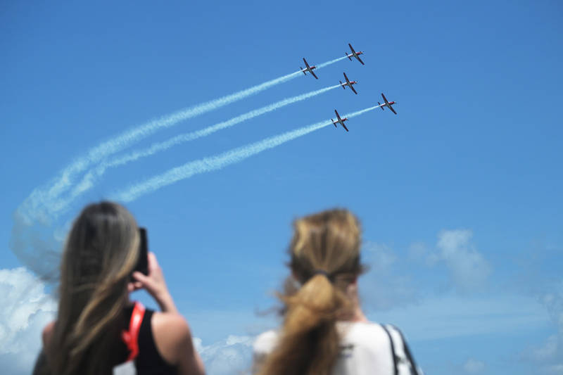 2月3日,中国空军八一飞行表演队在第十届新加坡航展首日进行飞行表演。 新华社发(邓智炜摄)