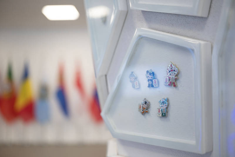 这是2月3日在意大利米兰奥运村拍摄的北京奥运会吉祥物徽章。 新华社记者 张豪夫 摄